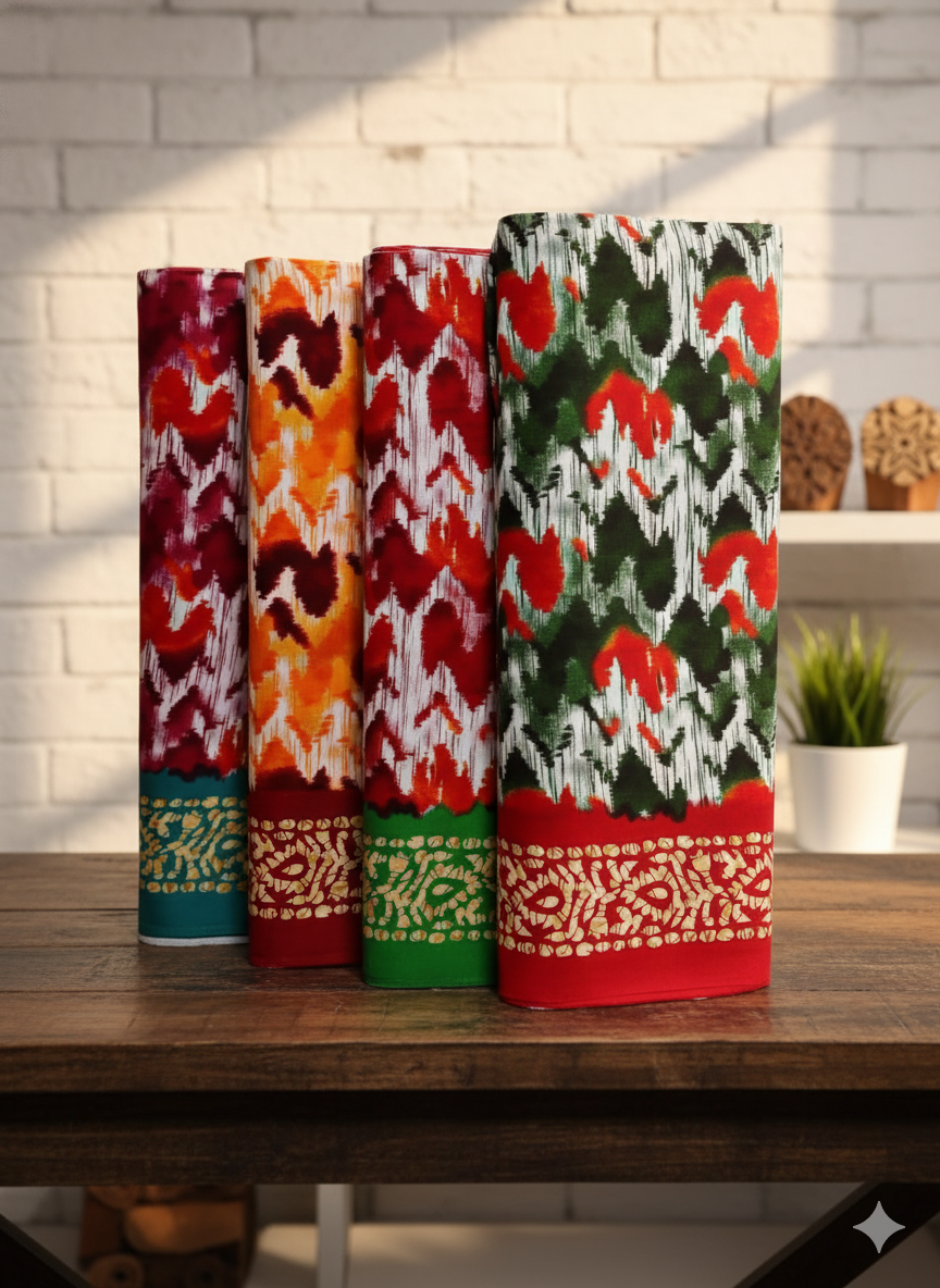 From vibrant cottons to luxurious rayons and shiflee-embroidered lafar fabrics, every metre tells a story of craftsmanship.